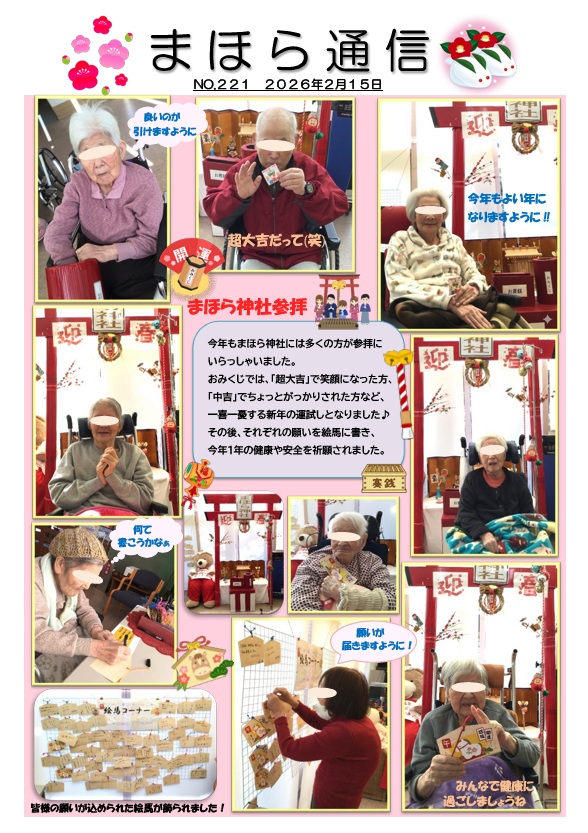 トップページ > まほら舞阪 > まほら通信 > まほら通信2026年2月15日
